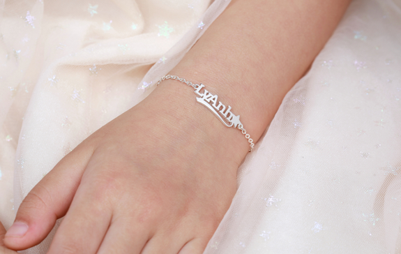 Ngoài quà tặng dây chuyền, bố mẹ cũng có thể tham khảo các mẫu lắc tay bạc khắc tên ý nghĩa cho bé. Lắc tay bạc được ưa chuộng vì tính thẩm mỹ cao, thiết kế gọn nhẹ, dễ dàng cho bé vui chơi, hoạt động hàng ngày.