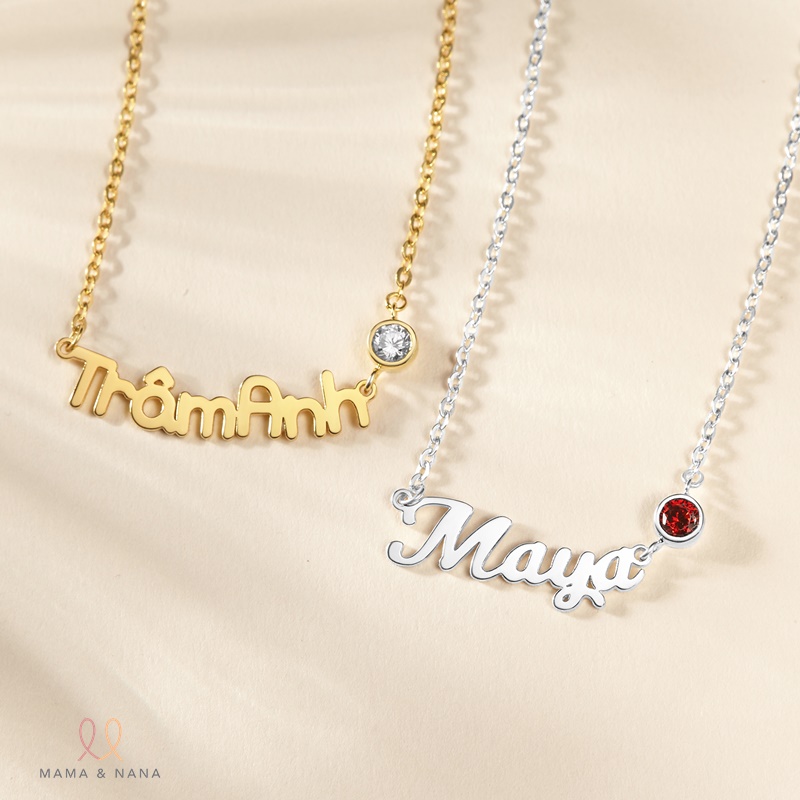 1. Dây Chuyền Khắc Tên Cho Bé Kèm Đá Quý Theo Mệnh - VKN05